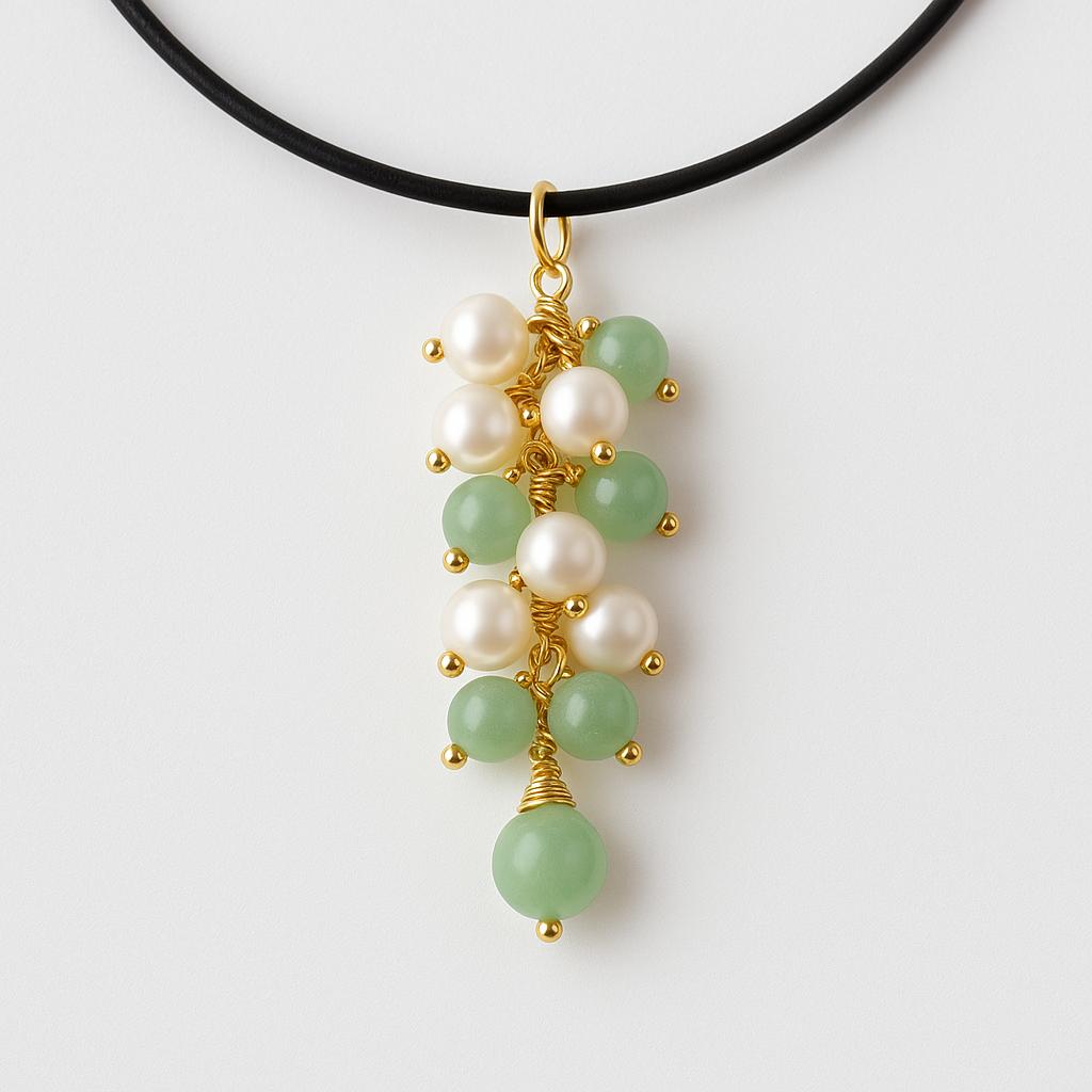 آویز گردنی مروارید و اونتورین خوشه‌ای اصل با طراحی دست‌ساز. نماد آرامش، عشق و خوش‌شانسی. انتخابی خاص برای استایل زنانه و هدیه‌ای ماندگار.