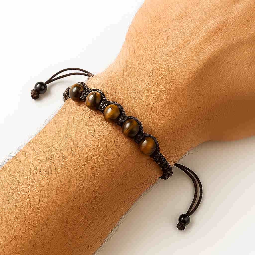 دستبند بافت چشم ببر با مهره‌های گرد طبیعی، مناسب برای تقویت اراده، تمرکز ذهن و محافظت در برابر انرژی منفی. طراحی قابل تنظیم و یونیسکس. خرید از سوبی.