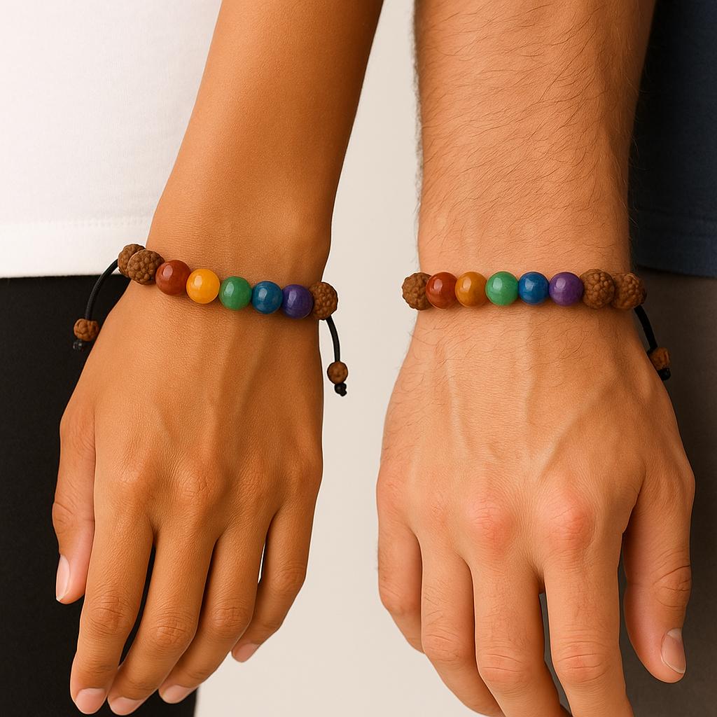 دستبند هفت چاکرا با ترکیبی از سنگهای طبیعی و دانه مقدس رودراکشا، نمادی از تعادل، آرامش و هماهنگی انرژیهای درونی است. این دستبند با طراحی زیبا و انرژیبخش، انتخابی عالی برای افرادی است که به مدیتیشن، یوگا، و رشد معنوی علاقهمند هستند.