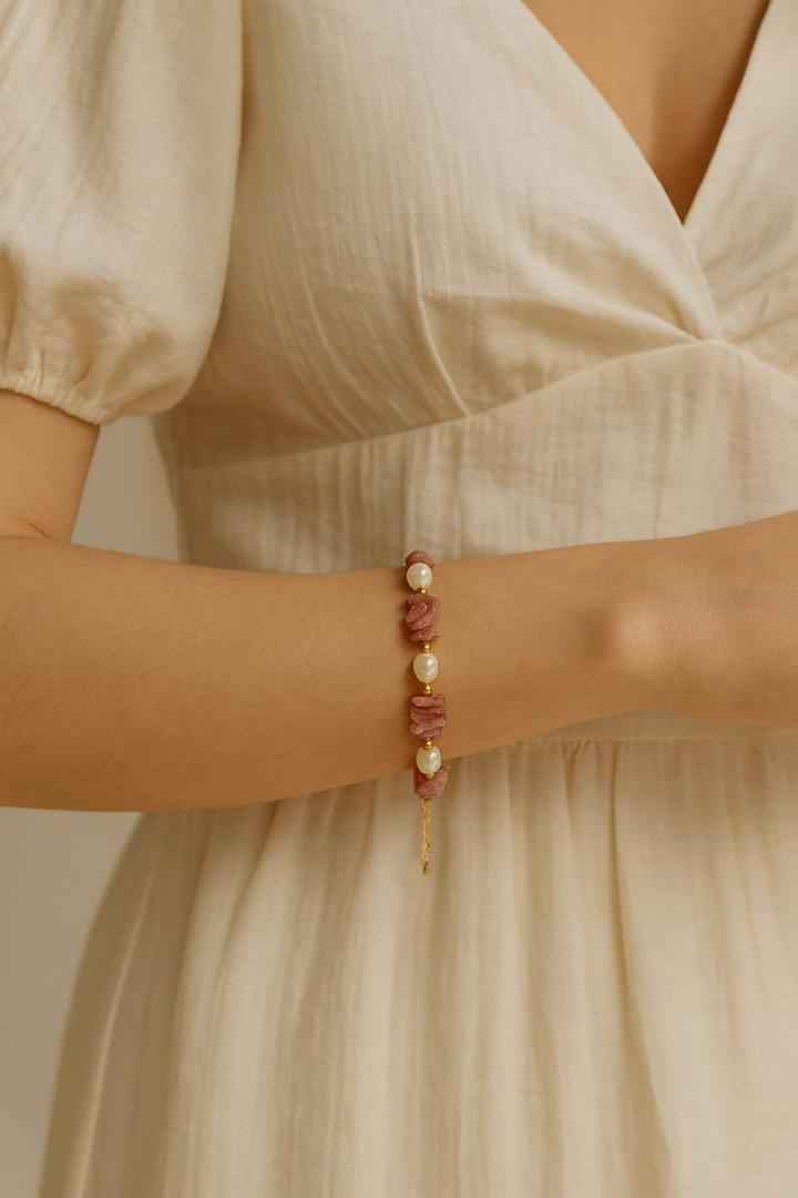 دستبند کوارتز توتفرنگی و مروارید پرورشی علاوه بر ظاهر زیبا، انرژیهای لطیف و تقویتکننده را همراه دارد.