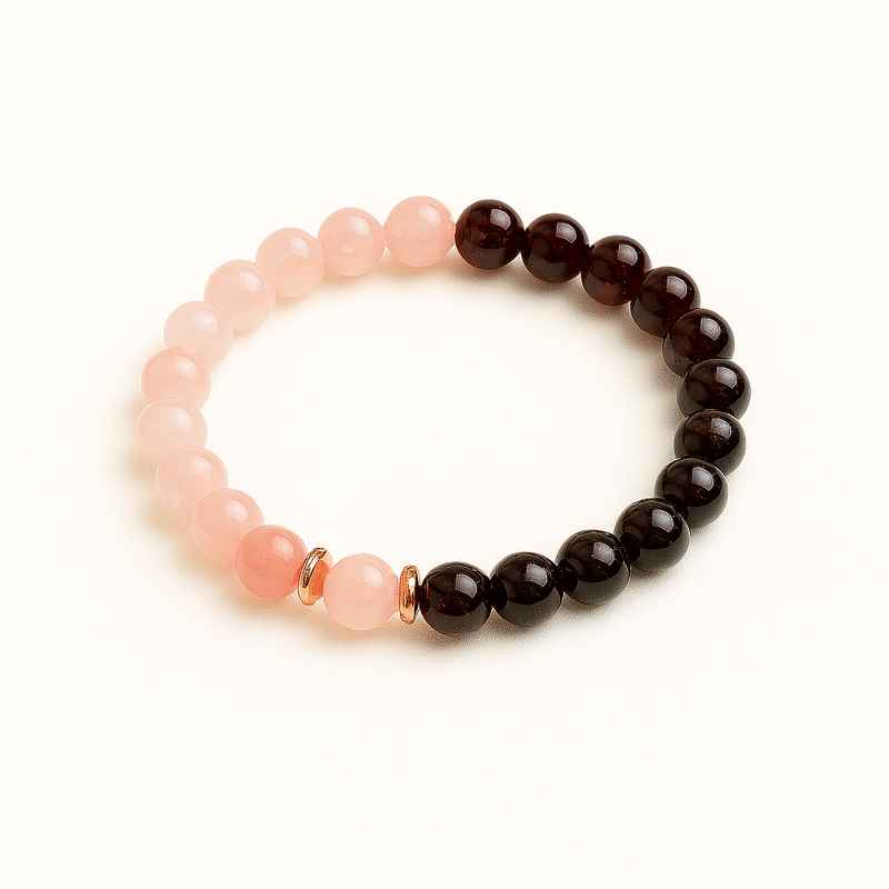 دستبند میکس گارنت و رز کوارتز با مهرههای گرد طبیعی، ترکیبی پرانرژی و هماهنگ برای افرادی است که به دنبال تعادل احساسی، عشق عمیق و قدرت درونی هستند.