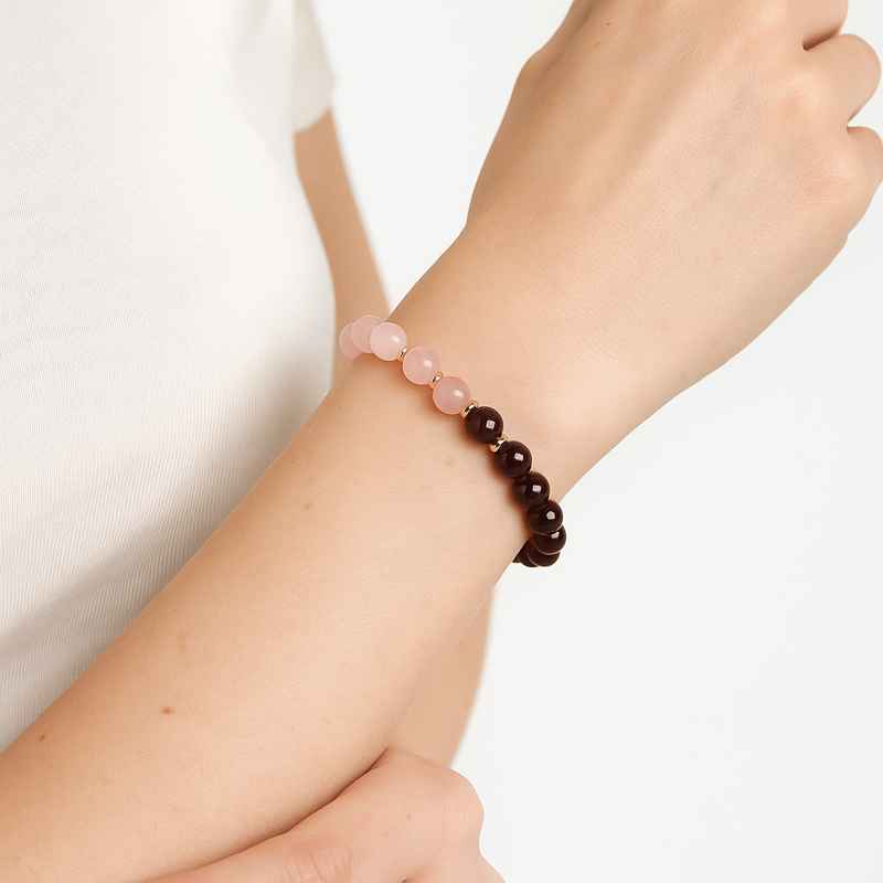 ⸻دستبند گارنت و رز کوارتز مهره گرد