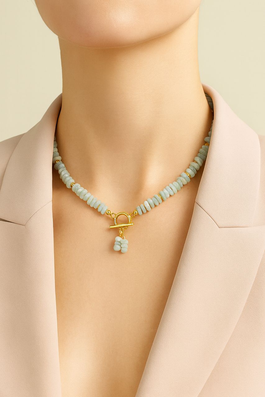 ویژگیهای اصلی گردنبند آکوامارین با گوی طلایی و قفل T