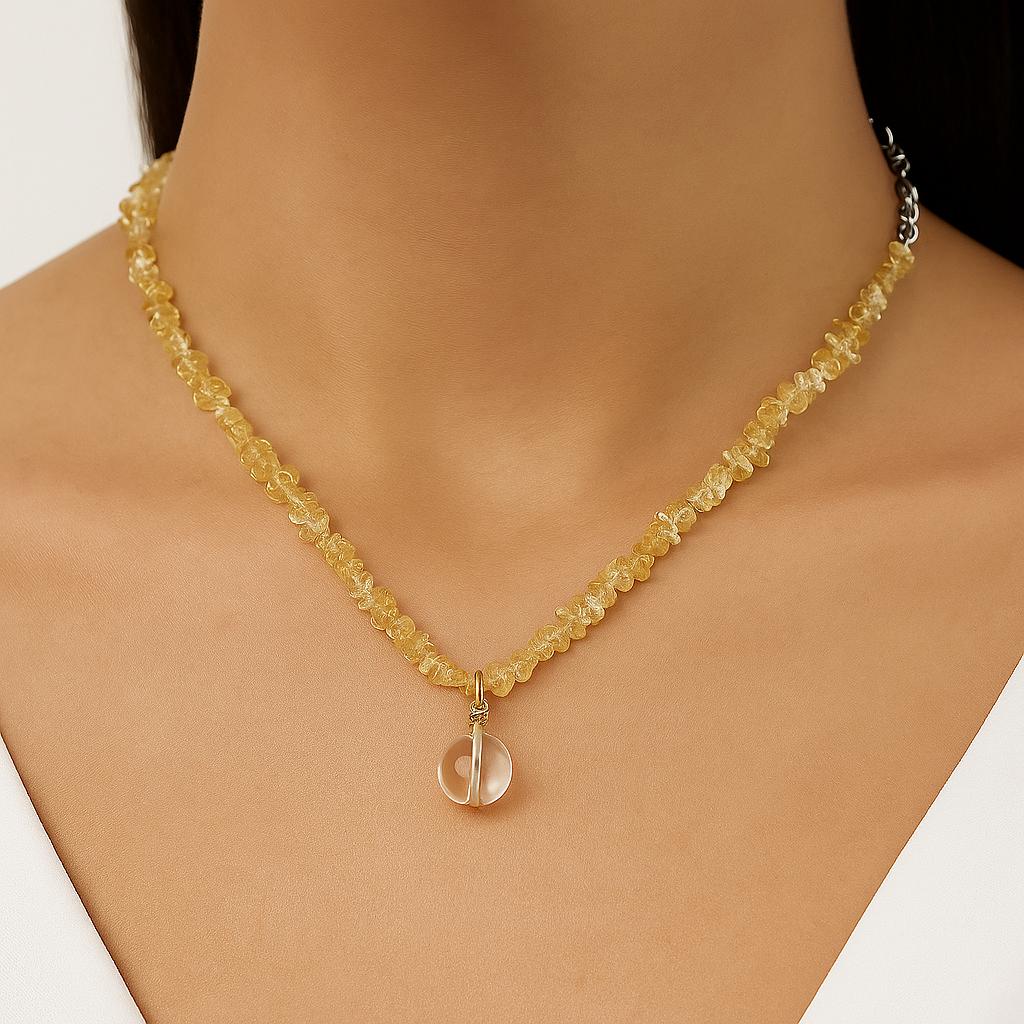 • سنگ طبیعی سیترین + آویز کوارتز شفاف