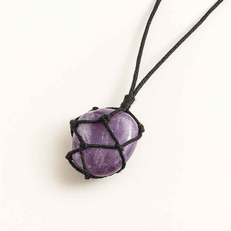 گردنبند مکرومه تامبل آمیتیست، ترکیبی از انرژی آرامبخش و هنر دست است.