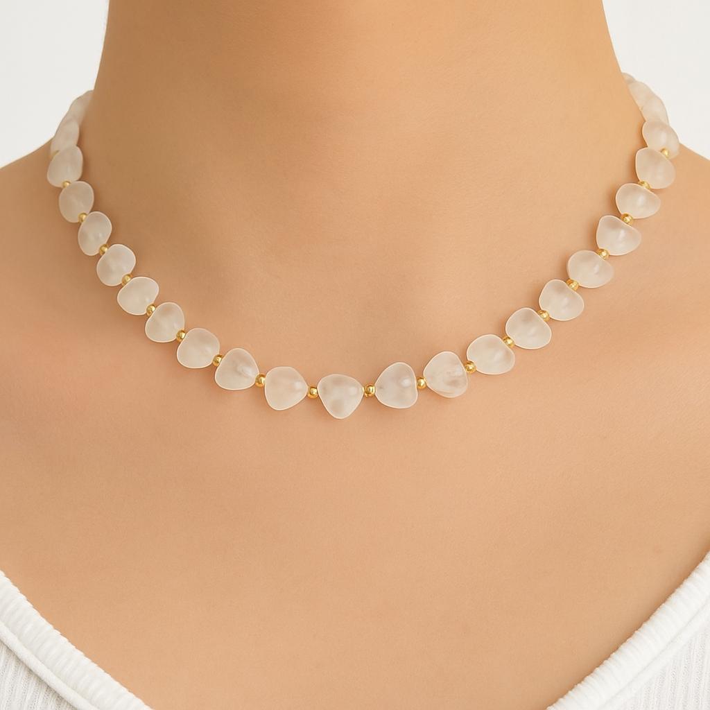گردنبند کوارتز قلبی، خرید گردنبند کوارتز، گردنبند سنگی لاکچری، گردنبند قلبی زنانه، اکسسوری کوارتز طبیعی، گردنبند عشق و آرامش