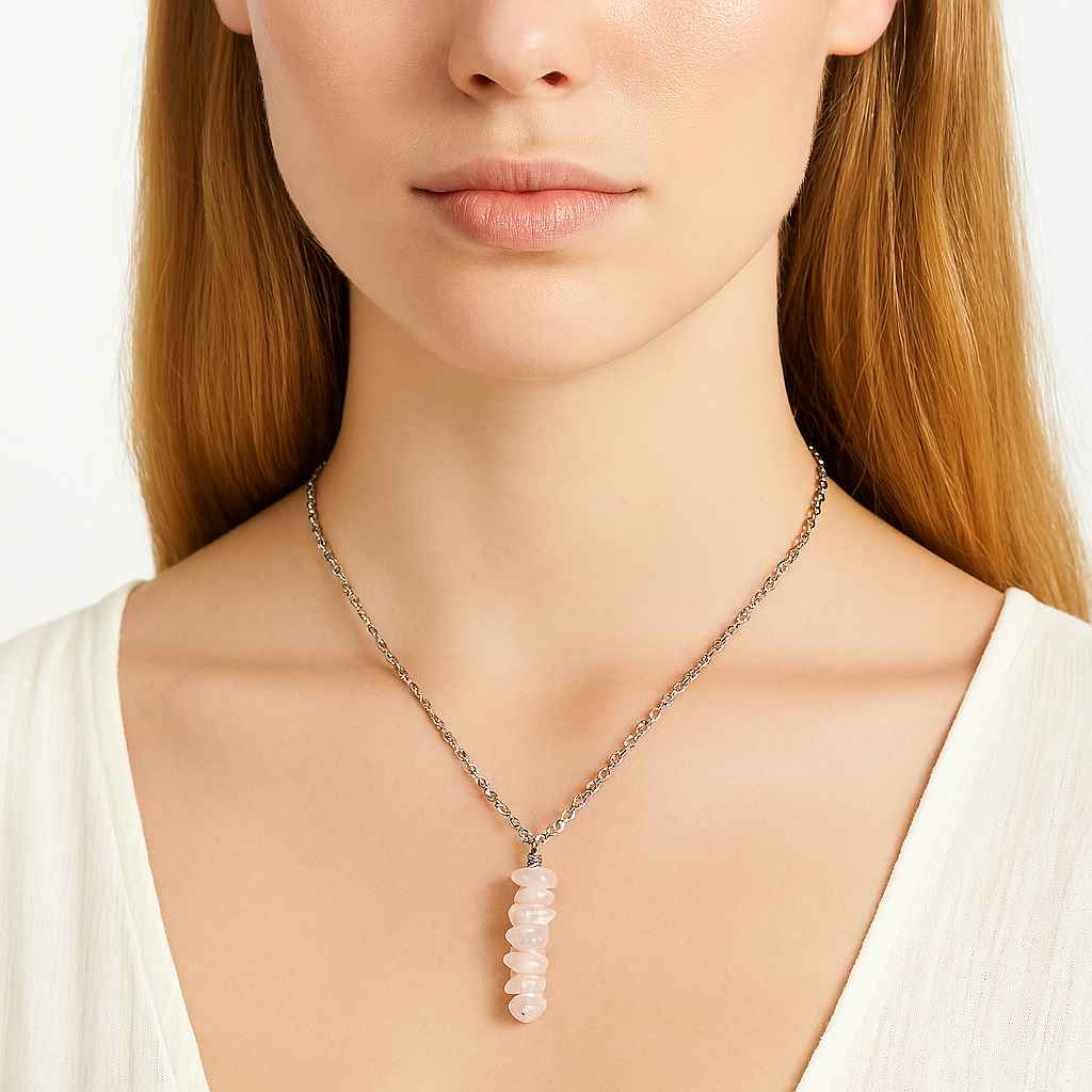 گردنبند رزکوارتز با زنجیر استیل ترکیبی از زیبایی، انرژی و کاربرد روزمره است. سنگ طبیعی رزکوارتز با رنگ صورتی ملایم، نماد عشق، شفقت و آرامش درونی است و با زنجیر استیل ضد حساسیت و بادوام، قابل استفاده روزانه و همیشگی میباشد.