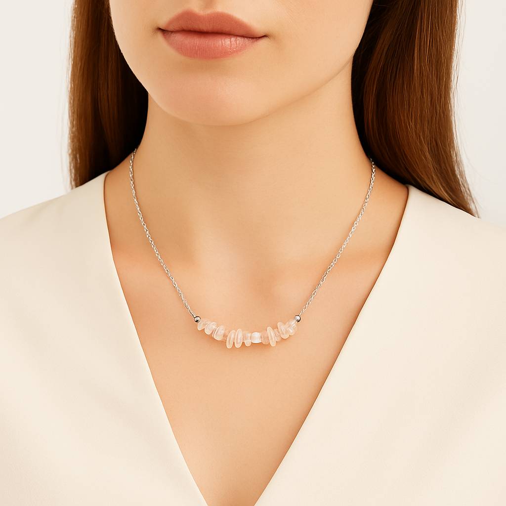 گردنبند طوق کوارتز شفاف با طراحی فیت گردن و استفاده از سنگ طبیعی کوارتز، نمادی از وضوح، تمرکز و انرژی پاک است. این گردنبند با فرم طوقی ظریف، بهراحتی با استایلهای مینیمال یا معنوی ست میشود و انتخابی عالی برای علاقهمندان به اکسسوریهای انرژیمحور است.